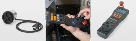Avec les manivelles électroniques de HEIDENHAIN, vous déplacez avec précision le chariot de l’axe par l’intermédiaire du moteur d’entraînement et en relation avec la rotation de la manivelle. Les manivelles peuvent être livrées crantées en option.